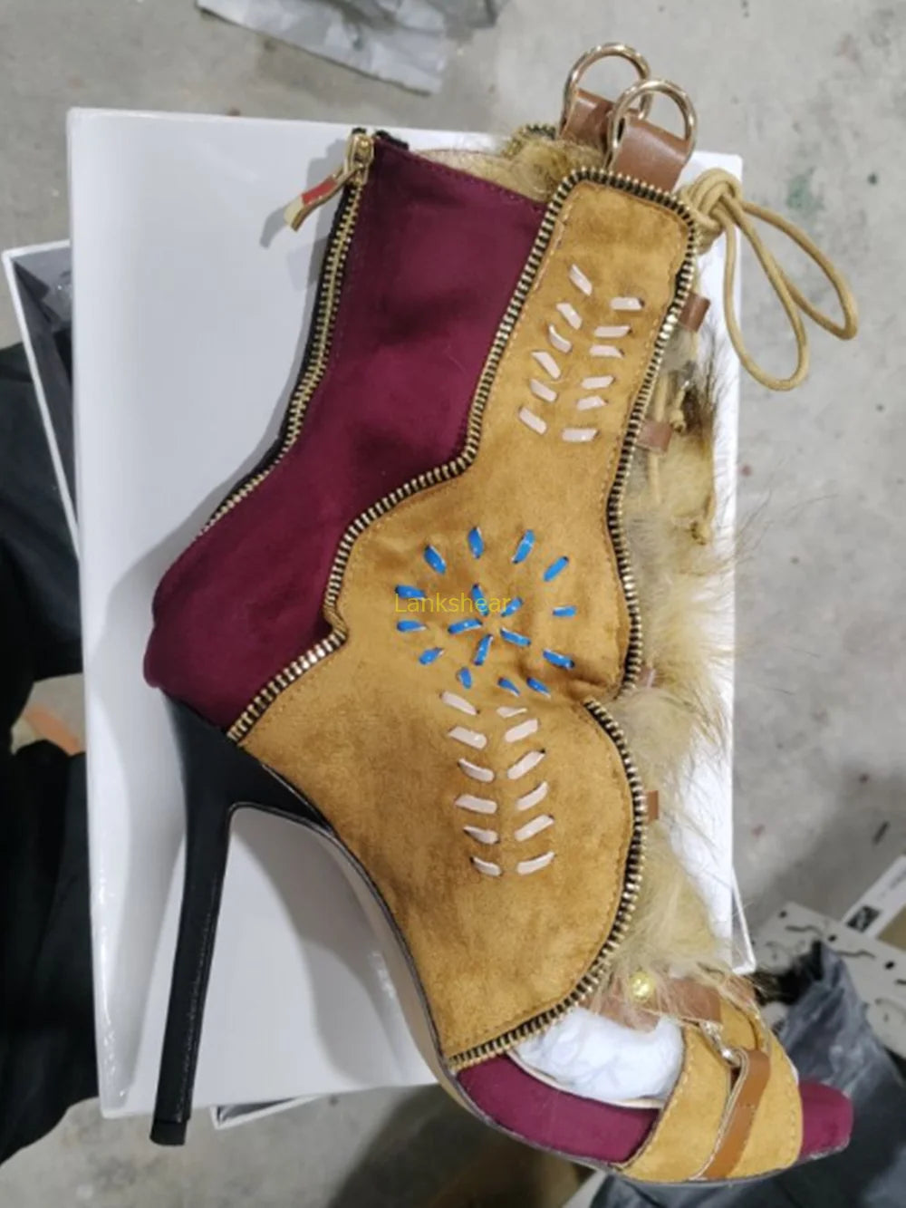 Product: Fur Peep Toe Cross Tied Platform Sandal Boots