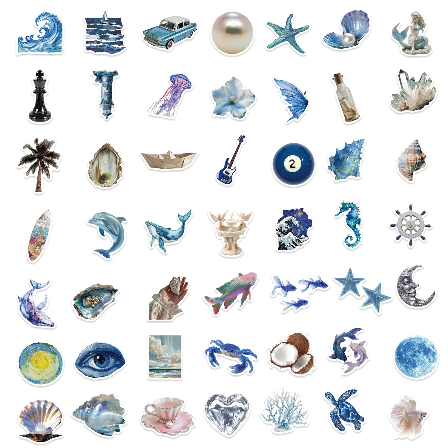 Silver Sea Breeze Aesthetic Stickers (50pcs)